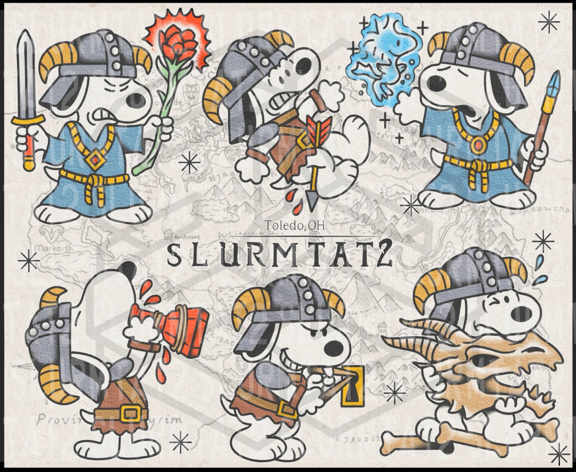 Sheet of Skyrim inspired snoopys