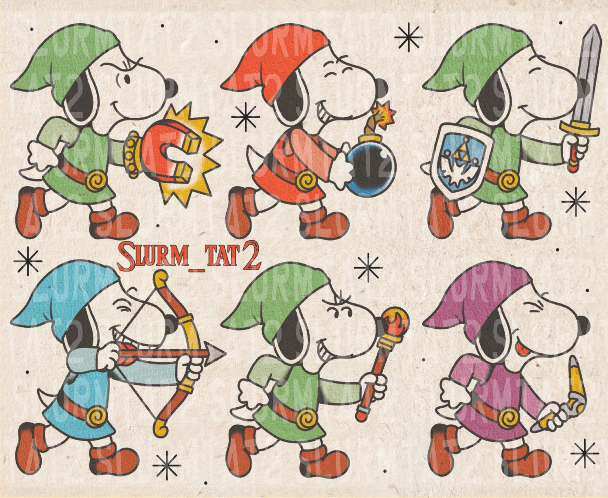 Sheet of swordsman inspired snoopys