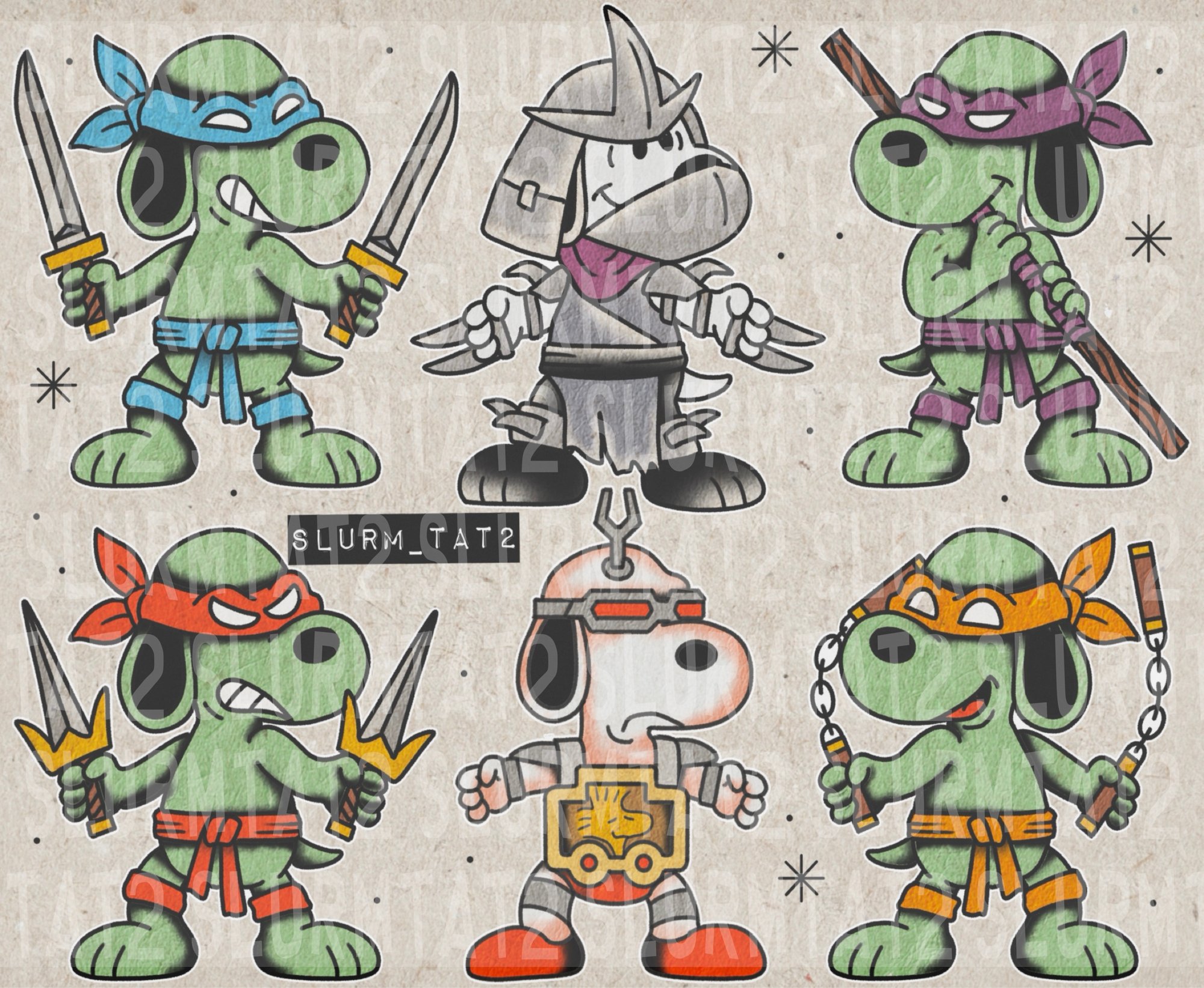 Sheet of snoops inspired by classic sewer dwelling mutants