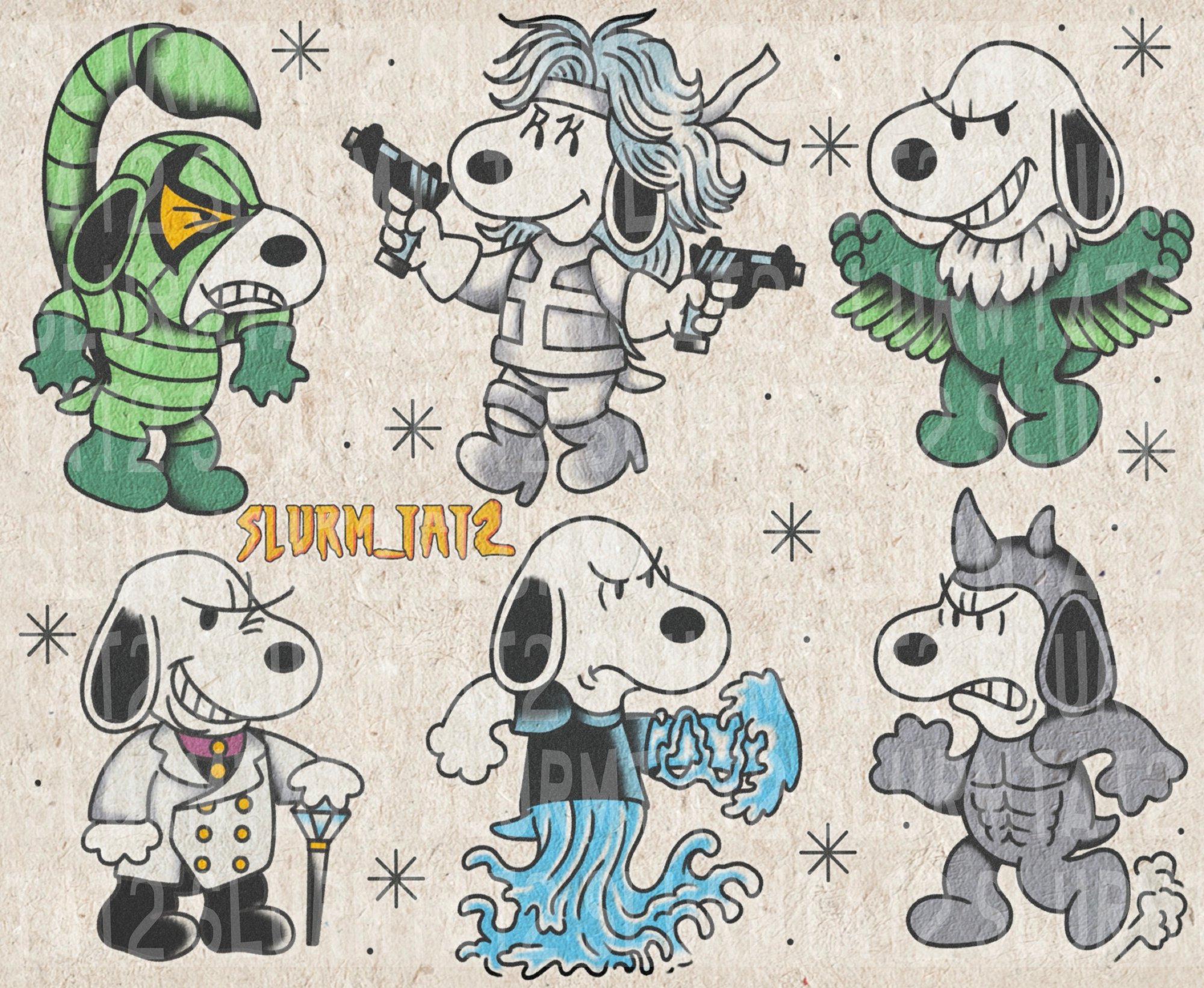 Sheet of snoops inspired by classic Comic book Heroes and villains