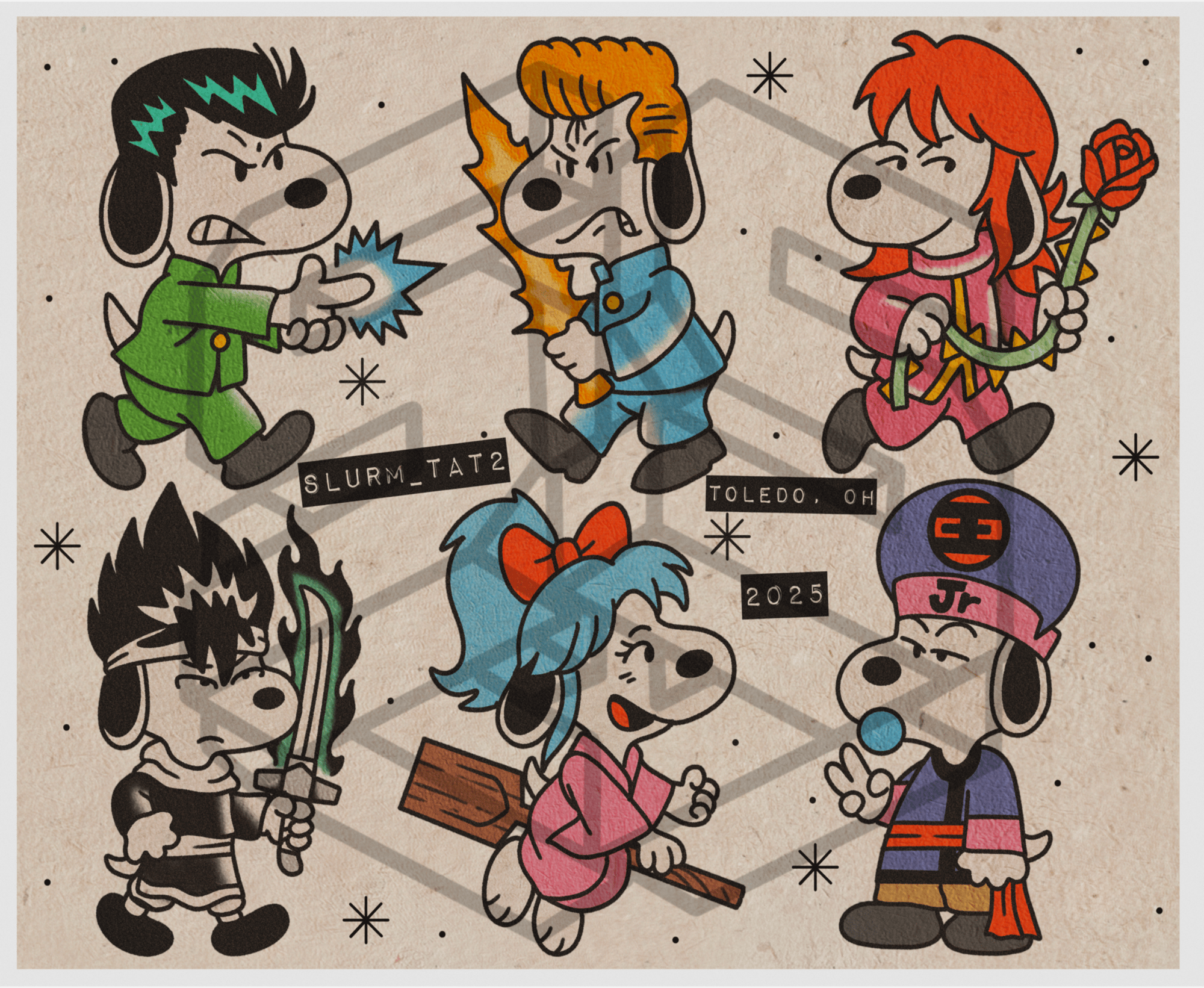 Sheet of Yu Yu Hakusho inspired Snoopys!